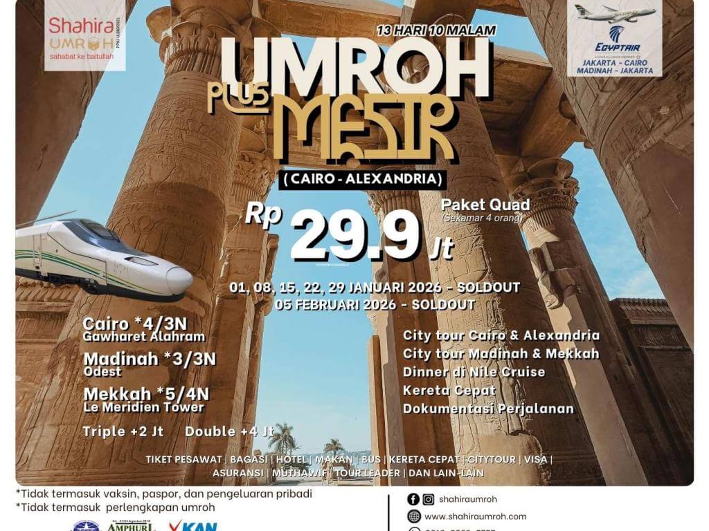 - Pembatalan lebih dari 30 hari sebelum kekeberangkatanan, akan dikenakan biaya administrasi dan biaya-biaya lain yang telah dibayarkan oleh Shahira Umroh.